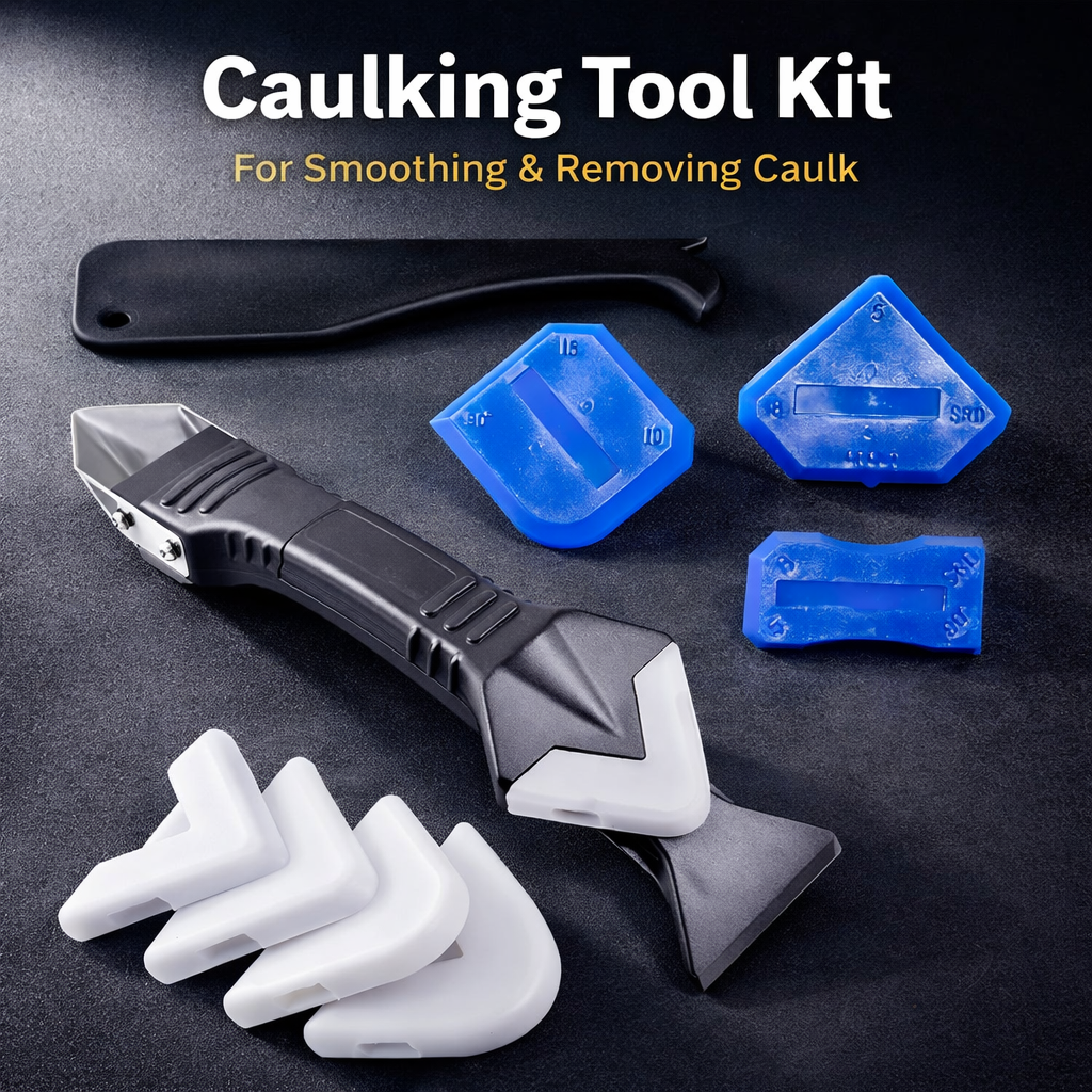 This easy caulking tool combines 3 tools in 1 — a silicone trowel, residue scraper, and sharp blade — for quick, clean results.